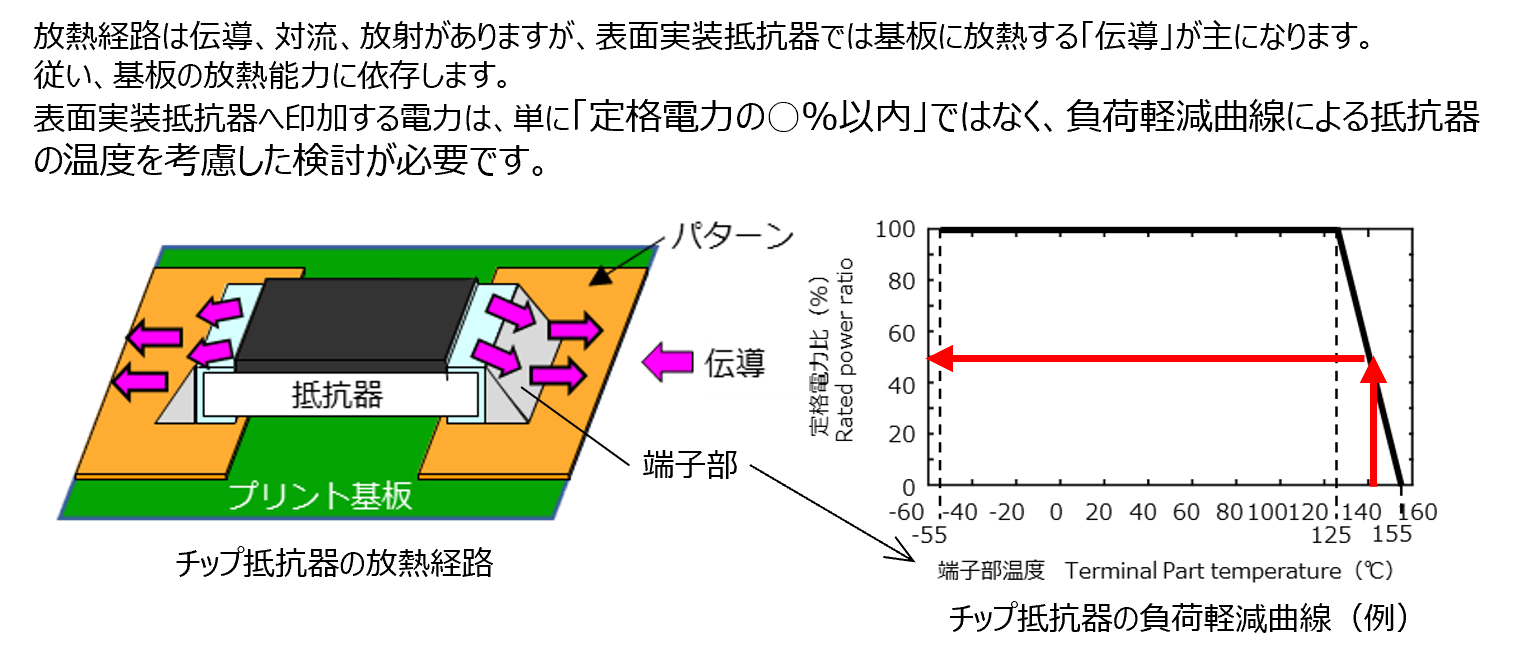 表面実装抵抗器の端子部温度による負荷軽減の注意点などについて解説