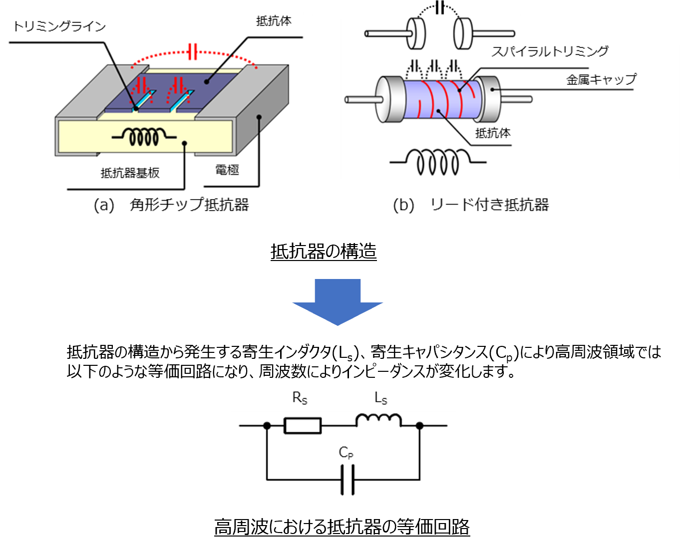 抵抗器は、その抵抗値や構造、サイズによって高周波領域で様々なインピーダンスの変化を示します。これにより高速動作する回路では、意図しない動作を引き起こすことがあります。