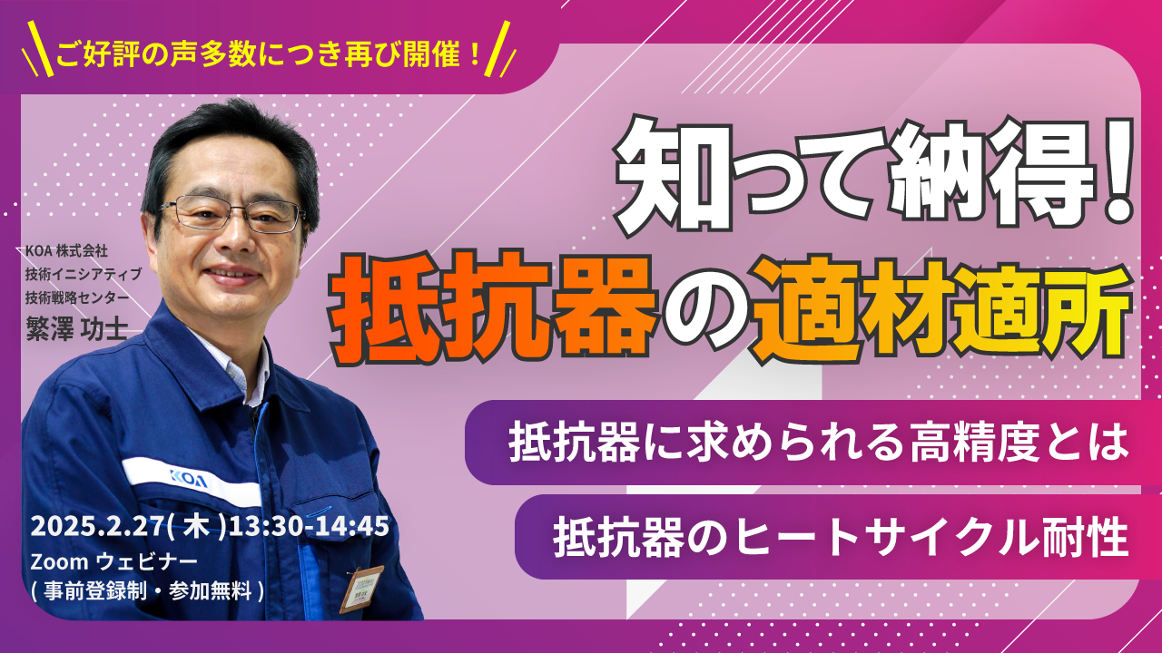 今回は、2023年5月31日(水)に開催し、大変ご好評いただいた「抵抗器の適材適所」のセミナーと同内容です。